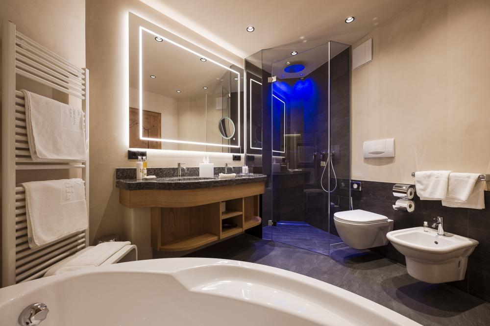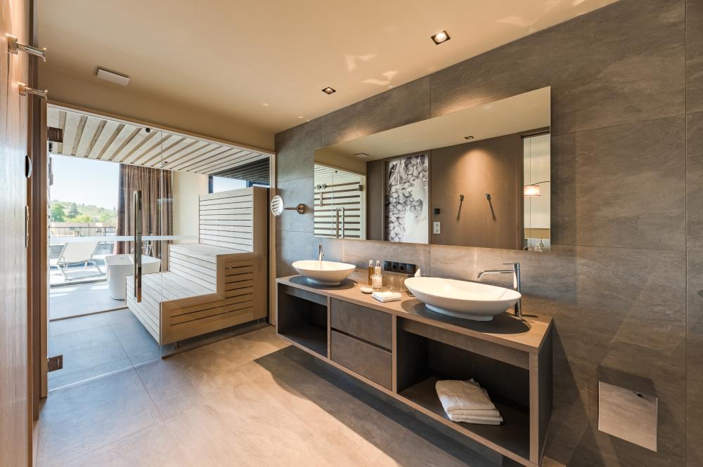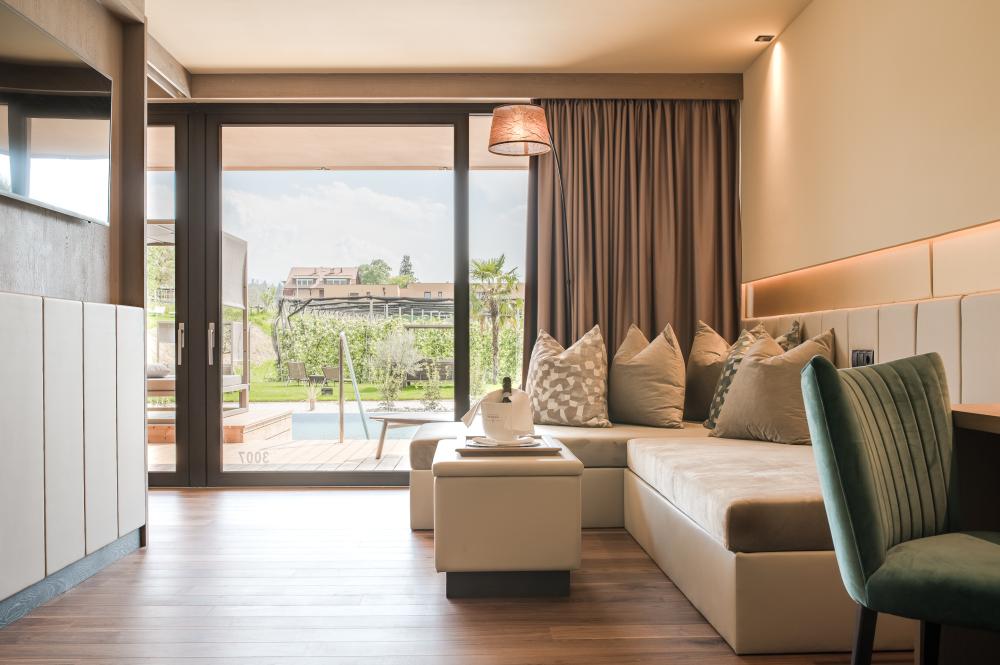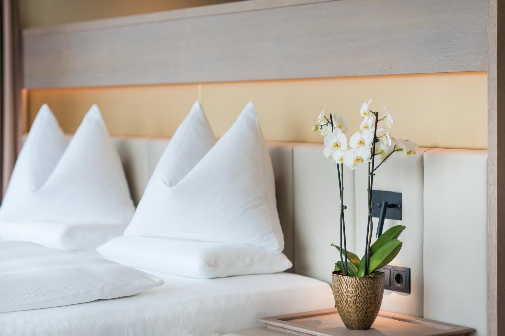 Komfortables Kingsize-Bett mit ergonomischen Boxspring-Matratzen | Wellness-Tasche mit Bademantel, Saunahandtuch sowie Slipper | Flachbild-TV - Tablet mit Entertainment-System | Voll ausgestattete Minibar | Kaffee-Tee-Maschine | Moderne, ruhige Klimaanlage | Safe | Erlesene Kosmetik-Produkte | Hochwertiger Föhn | Großer Regenschirm